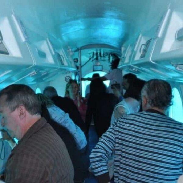 Sie werden in das U-Boot steigen. Es gibt spezielle Sitzplätze für alle und es gibt Fenster vor den Sitzplätzen. Aus diesen Fenstern können Sie den Blick nach draußen genießen.